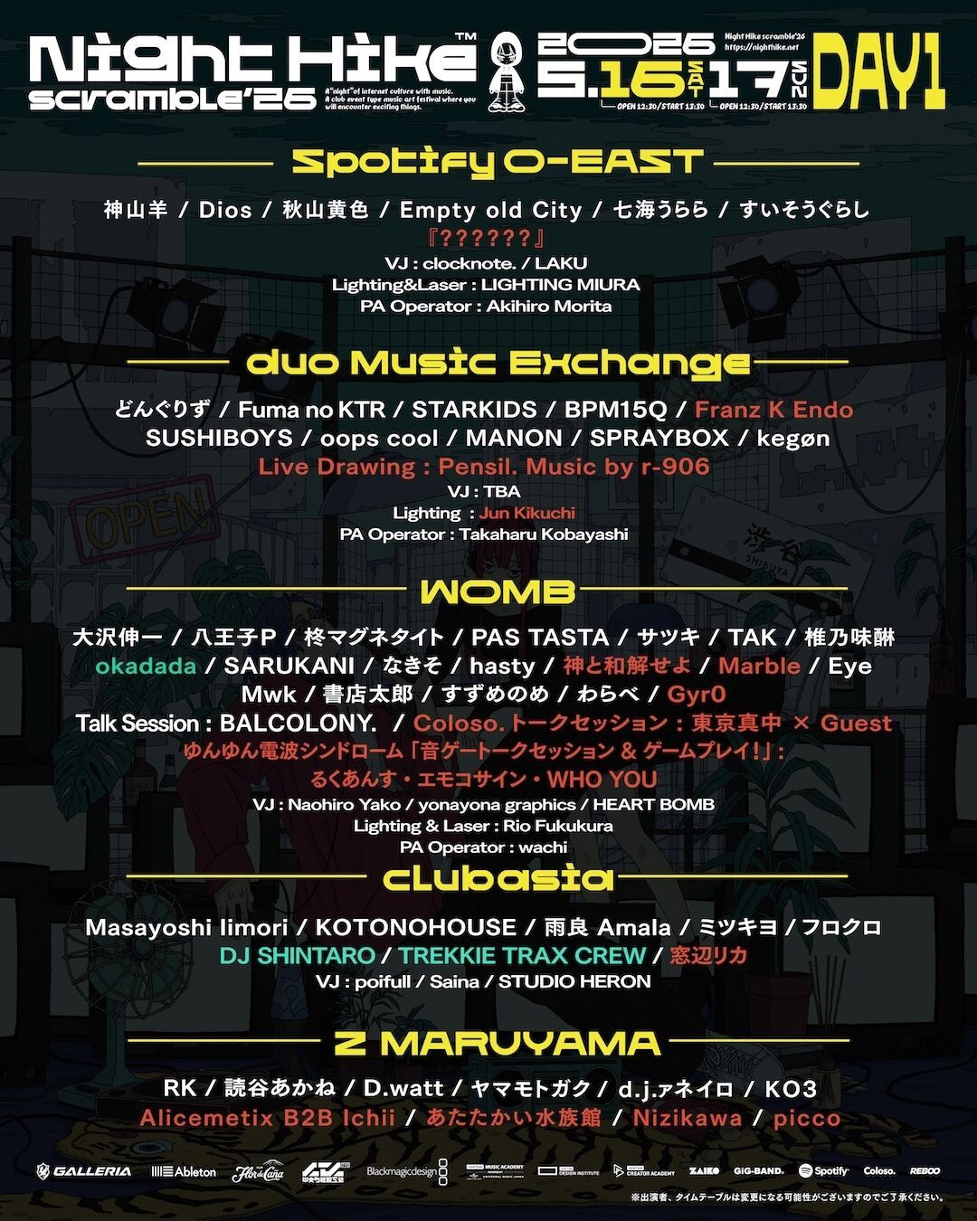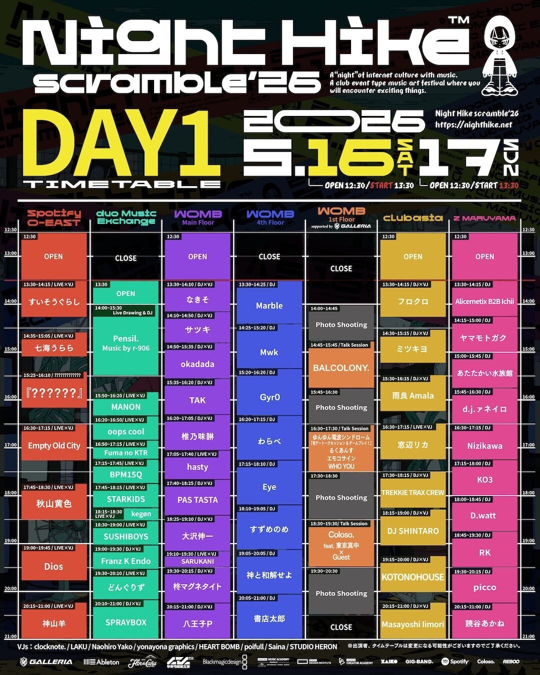 5月16日(土)・17日(日)の2日間、渋谷の5会場を舞台に開催される、インターネット発の音楽・イラスト・映像など、多彩なネットカルチャーを軸としたミュージック&アートフェス『NIGHT HIKE -scramble- ’26』。開催までいよいよ1か月となりました。
