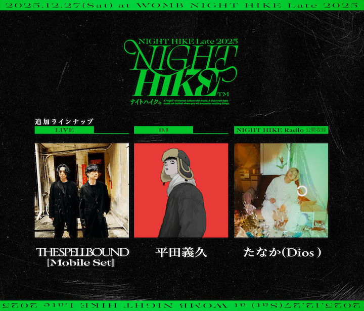 2025年を締めくくるにふさわしい、豪華ラインナップでお贈りする「NIGHT HIKE Late 2025」を皆さんどうぞお見逃しなく!